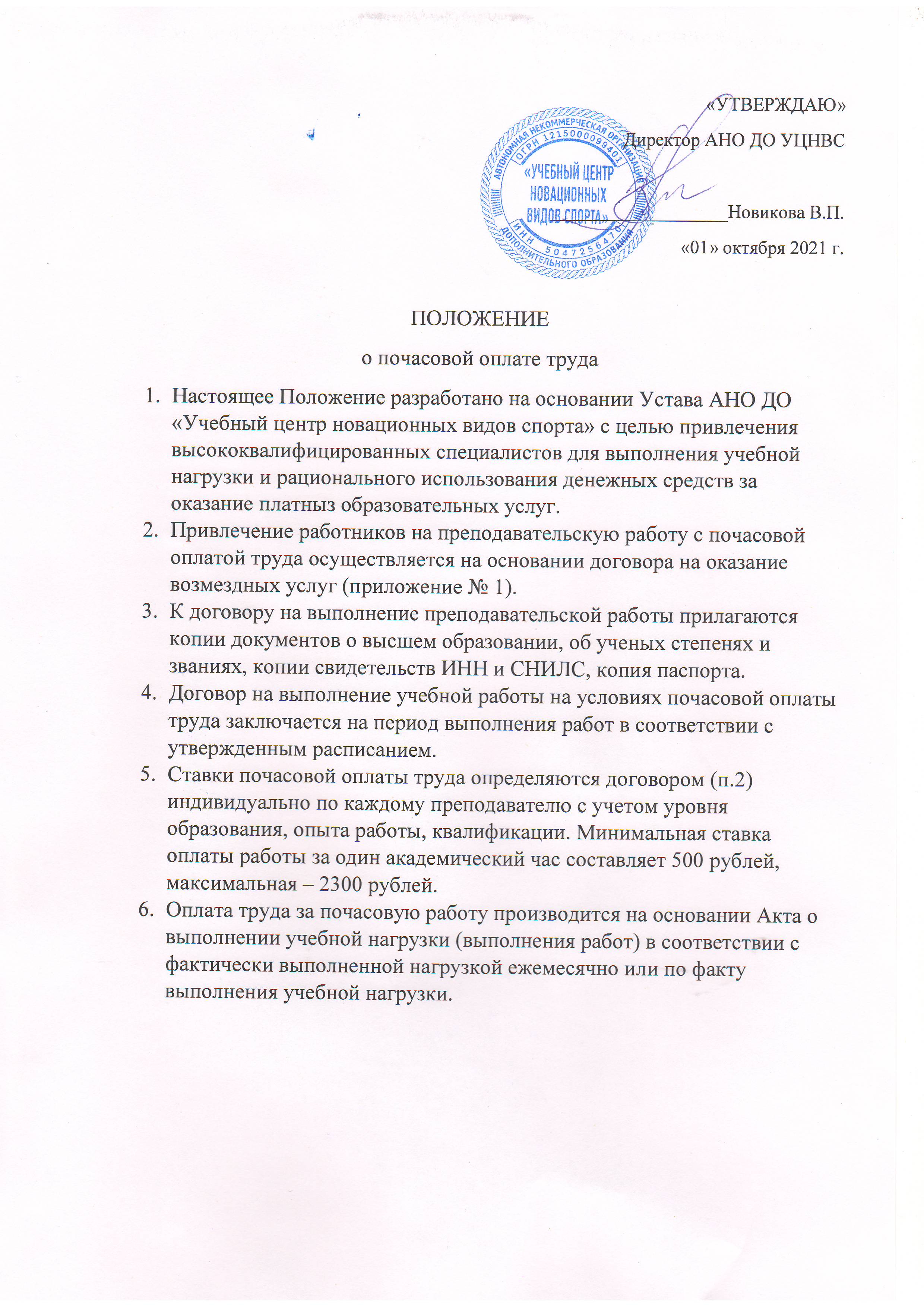 Положение о почасовой оплате труда