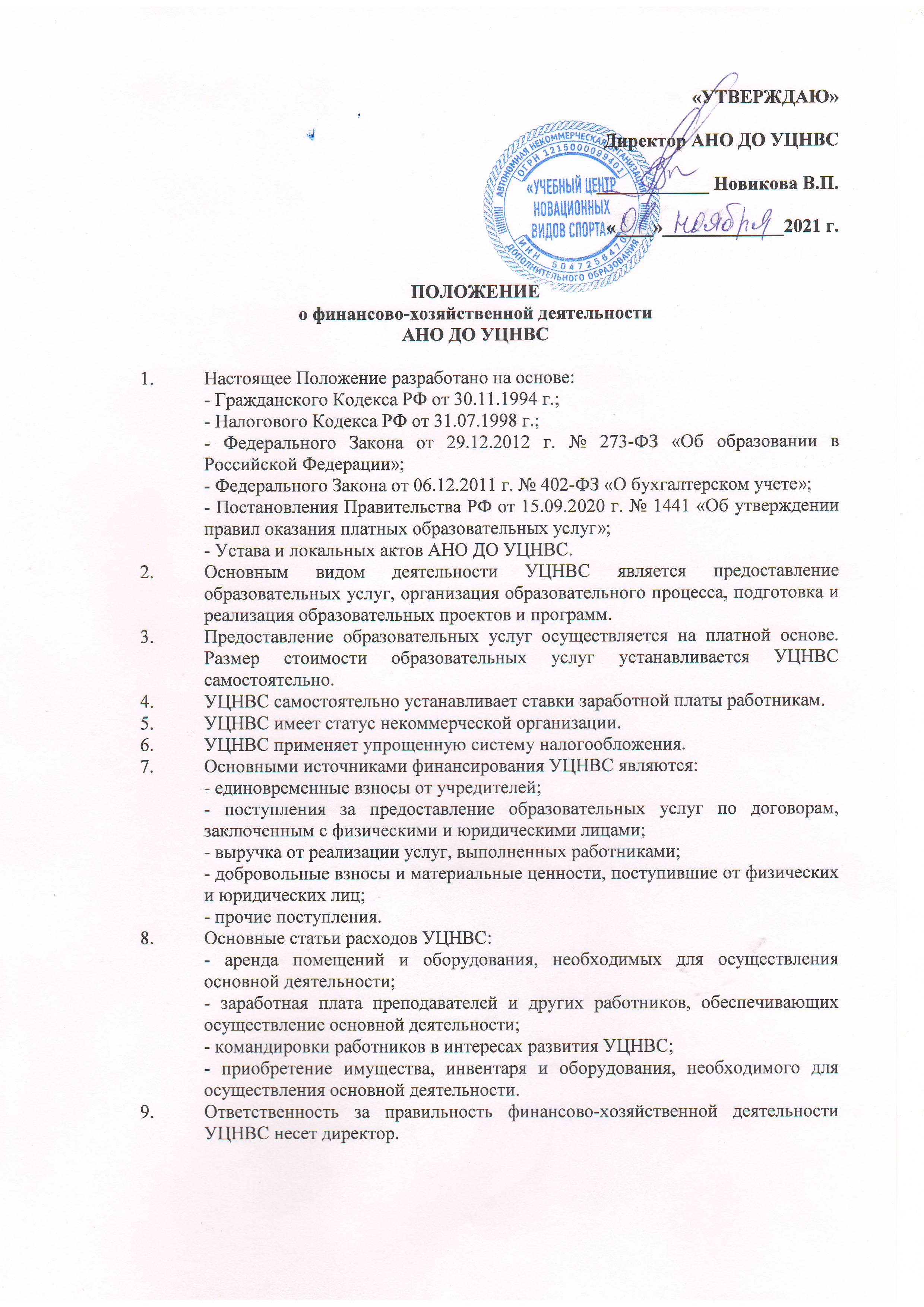 Деятельность Учебного центра организована на основании законодательных актов в области образования, налогообложени, бухгалтерской отчетности, а так же собственных локальных актов по финансово-хозяйственному профилю